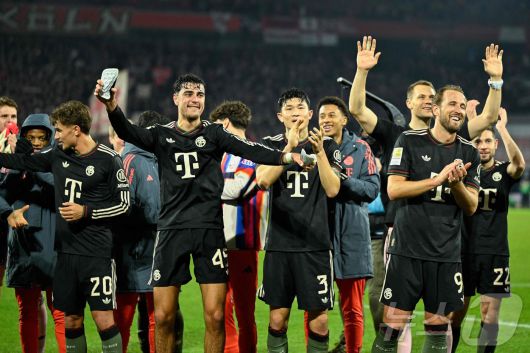 바이에른 뮌헨 김민재가 15일(한국시간) 독일 쾰른의 라인 에네르기 슈타디온에서 열린 FC쾰른과 원정 경기에서 3-1로 승리 후 동료들과 기뻐하고 있다. ⓒ AFP=뉴스1 |