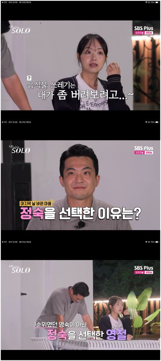 14일 방영된 SBS 예능 ‘나는 SOLO - 나는 솔로’(이하 ‘나는 솔로’)에서는 솔로들의 하루 전날 이야기가 펼쳐졌다. 영숙은 소심하고 조용하지만 자신의 마음을 고백해오는 영호에게 피로감을 느꼈다.