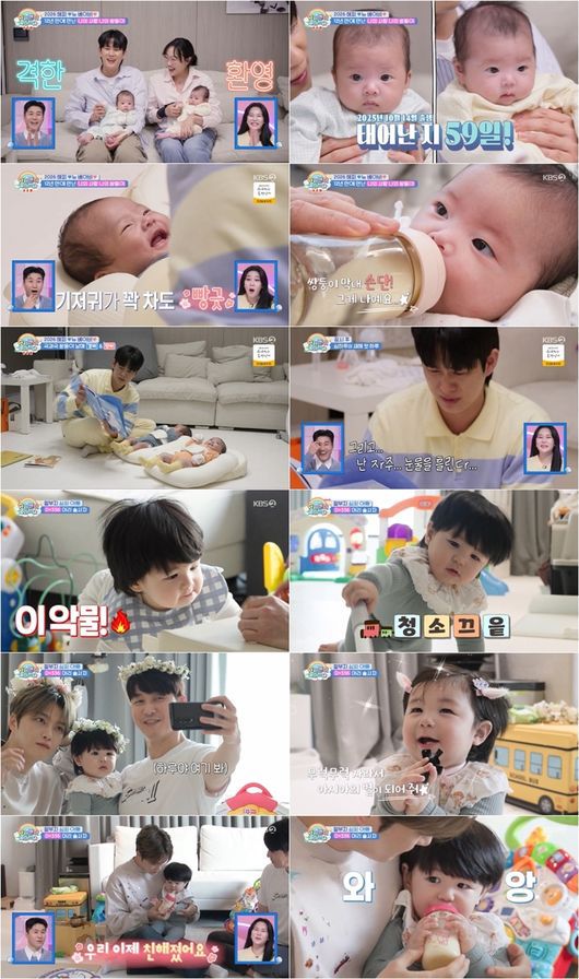 손민수는 육아 중 오열로 랜선 이모, 삼촌들의 깊은 공감을 이끌었다. 동화책을 읽어주다가 오열하고, 분유를 먹인 후 트림을 시키던 중 단이가 토를 하자 “아빠가 미안해”라며 눈물을 흘리는 등 역대급 오열 아빠의 등장을 알렸다. 또한 손민수의 서툴렀지만 진심 어린 육아도 감동을 선사했다. 두 아이를 안고 기저귀를 갈며 분유를 먹이고, 아이들의 상태를 꼼꼼히 체크한 뒤 육아일지를 작성하는 초보아빠의 모습은 강이와 단이를 향한 사랑을 전하기에 충분했다.