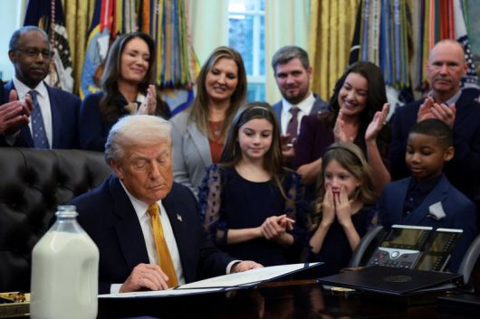 한편 트럼프는 이날 연방 학교 급식 프로그램에 참여하는 공립학교들이 학생들에게 일반우유를 제공할 수 있게 하는 내용의 상원 통과 법안에 서명했다. 이는 저지방 우유만 학생들에게 제공하도록 한 버락 오바마 정부 시절의 지침을 폐기하는 것이다.