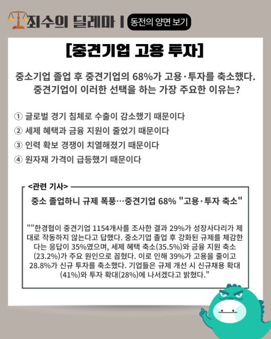 ▶ 기사 바로가기: 중소 졸업하니 규제 폭풍···중견기업 68% “고용·투자 축소”