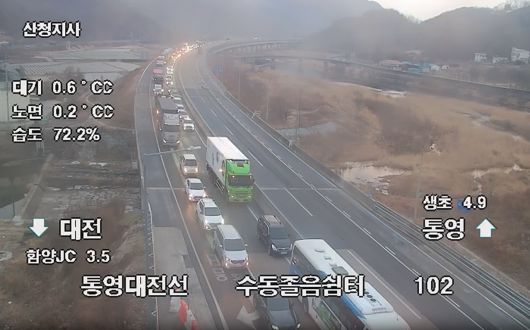 함양군은 안전 안내 문자를 통해 해당 구간을 지나는 운전자들에게 고속도로 정체 상황을 알리며, 생초IC를 통해 인근 국도로 우회해 줄 것을 긴급히 당부했다.