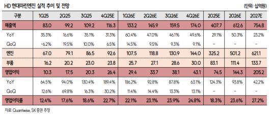한승한 SK증권 연구원은 "올해 엔진 부문은 지난해 이후 수주분의 매출 비중이 점진적으로 확대될 예정"이라며 "고마진 엔진 납품 물량 증가가 빠른 속도로 확대됨과 동시에 주문자위탁생산(OEM) 물량 소화 이후 온전한 직계약 물량 반영으로, 큰 폭의 물량(Q) 상승효과와 동시에 가격(P) 상승효과에 따른 가파른 이익 개선세를 동시에 시현할 전망"이라고 내다봤다.