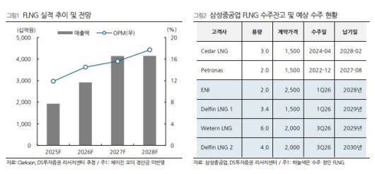 2027년부터는 반복 건조 효과와 더불어 체인지오더 정산금(일회성 이익)이 본격적으로 실적에 반영될 것으로 전망했다. 김 연구원은 “특히 2028년은 체인지오더 정산금 인식이 극대화되기 시작하는 시점으로 FLNG 영업이익률 20% 이상 달성도 충분히 가능하다고 판단한다”고 설명했다.