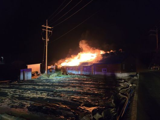 [완도=뉴시스]이현행 기자 = 15일 오전 5시34분께 전남 완도군 소안면 김 건조공장에서 불이 나 소방 당국이 진화 작업을 벌이고 있다.