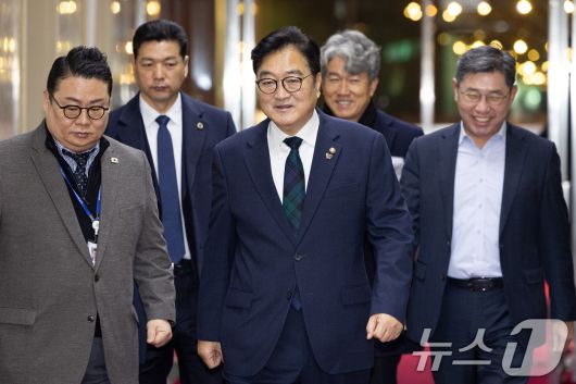 (서울=뉴스1) 유승관 기자 = 우원식 국회의장이 15일 서울 여의도 국회에서 여야 원내대표와 회동하기 위해 집무실로 들어서고 있다. 2026.1.15/뉴스1fotogyoo@news1.krCopyright ⓒ 뉴스1. All rights reserved. 무단 전재 및 재배포, AI학습 이용 금지.