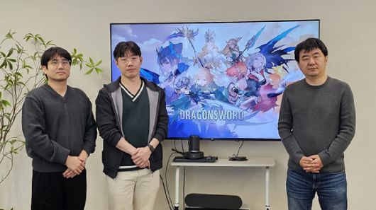 왼쪽부터 장윤진 드래곤소드 PD, 곽노찬 크리에이티브 디렉터(CD), 박정식 하운드13 대표. [사진=웹젠] |