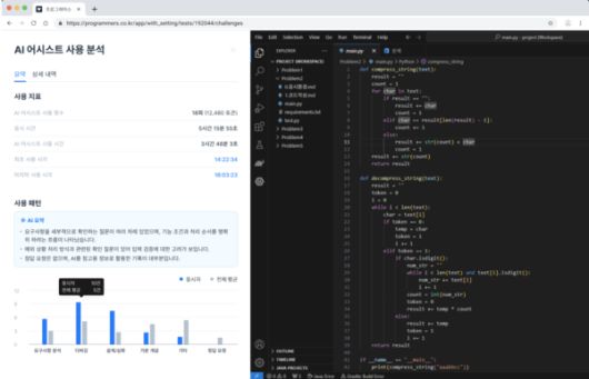 회사 측에 따르면 'AI 어시스트'는 표준화된 AI 환경을 제공해 응시자 AI 협업 능력을 직접 측정한다. 응시자는 실제 업무 환경과 유사하게 AI와 실시간으로 소통하며 코드를 생성하거나 오류를 수정할 수 있다. 채용 기업은 응시자가 제출한 최종 결과물은 물론, 입력한 프롬프트 품질과 AI 답변을 검증하는 판단 과정 등 문제 해결 전 과정을 확인하고 분석할 수 있다.