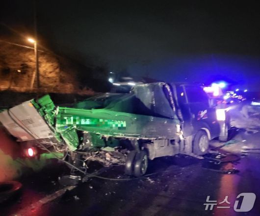 경찰은 1차로에서 단독사고로 정차 중인 그랜저를 화물차가 들이받은 데 이어 뒤따르던 EV3가 화물차를 추돌한 것으로 보고 자세한 사고 경위를 조사 중이다.
