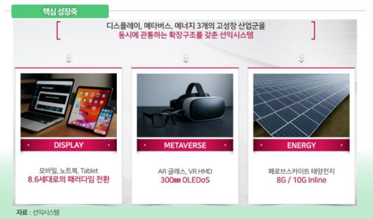 한 연구원은 "선익시스템은 8.6세대 OLED 투자 이후에도 XR·VR 확산에 따른 마이크로 디스플레이 시장 개화로 일회성 매출을 넘어선 중장기 성장 동력이 유효하고, 이에 따라 멀티플 리레이팅 여력이 충분하다"라며 "특히 OLEDoS 증착기시장에서 80% 이상의 점유율을 차지하는 독보적인 1위 업체로, 사실상 글로벌 표준으로 인식된다"라고 밝혔다.