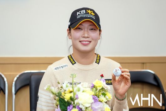 [mhn포토] 방신실, 사인볼 들고 환한 미소
