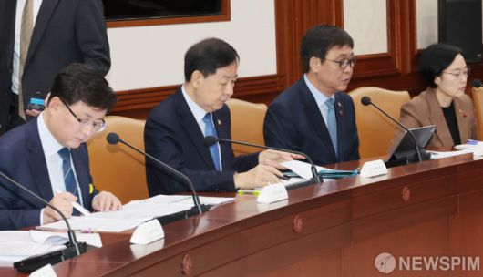 [서울=뉴스핌] 이길동 기자 = 15일 서울 종로구 정부서울청사에서 열린 국가정책조정회의에 참석한 구윤철 부총리 겸 재정경제부 장관(왼쪽 두번째)을 비롯한 참석자들이 김민석 총리의 모두 발언을 듣고 있다. 2026.01.15 gdlee@newspim.com |