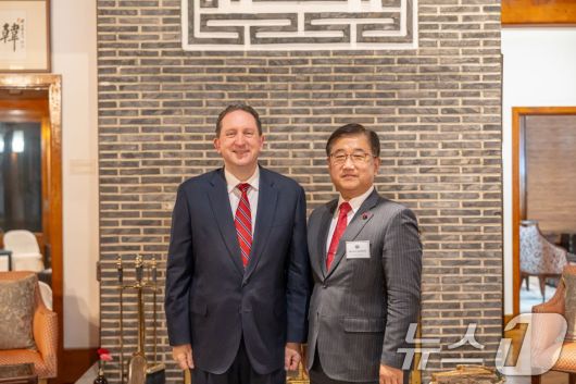 (서울=뉴스1) 이재명 기자 = 박관천 대통령경호처 정책관(오른쪽)과 제임스 R. 헬러 주한미국대사관 대사대리가 지난 12일 미국대사관저에서 열린 대통령경호처 초청 리셉션에서 기념촬영을 하고 있다. (대통령경호처 제공. 재판매 및 DB 금지) 2026.1.15/뉴스1