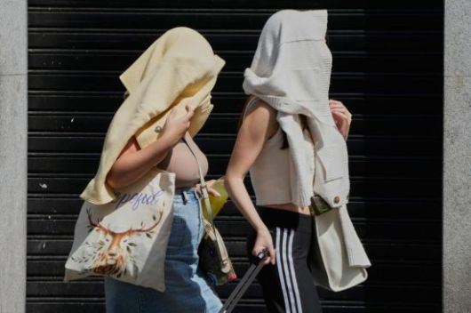 지난해 극단적인 더위가 찾아온 스페인 마드리드에서 시민들이 태양을 피해 옷을 뒤집어 쓴 모습. AP연합뉴스 |