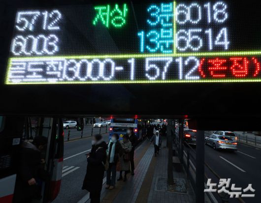 파업으로 이틀 동안 중단됐던 서울 시내버스 운행이 첫 차부터 재개된 15일 서울 강서구 한 버스정류장에서 시민들이 버스에 탑승하고 있다. 서울시버스노동조합과 서울시버스운송사업조합은 14일 오후 11시 50분쯤 서울지방노동위원회에서 열린 노동쟁의 관련 특별조정위원회 2차 사후 조정회의에서 임단협 조정안에 최종 합의했다.