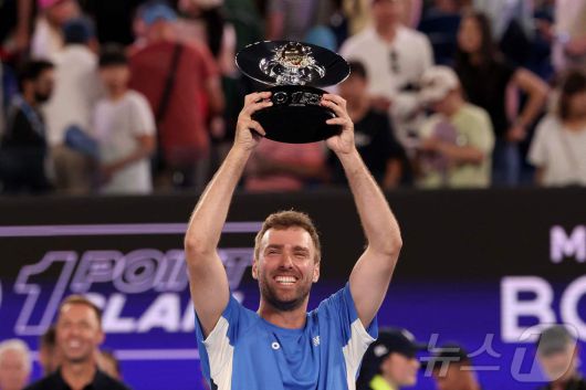 (서울=뉴스1) 권혁준 기자 = 아마추어 테니스 선수 조던 스미스(호주)가 남자프로테니스(ATP)투어 단식 세계랭킹 1위 카를로스 알카라스(스페인)와 얀니크 신네르(이탈리아)가 모두 출전한 이벤트 대회에서 우승했다.