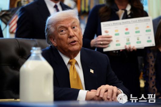 14일(현지시간) 도널드 트럼프 미국 대통령이 백악관 오벌오피스(집무실)에서 열린 '건강한 아이들을 위한 전지우유 법' 서명식에서 발언하는 모습. [사진=로이터 뉴스핌] |