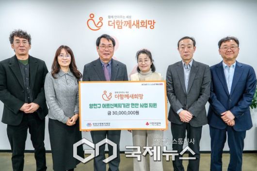 (서울=국제뉴스) 김서중 기자 = ㈔더함께새희망이 본부 사옥에서 양천구 어르신복지기관 현안 사업 을 위한 지원금 3,000만원을 양천사랑복지재단에 전달했다.