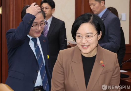 [서울=뉴스핌] 이길동 기자 = 한성숙 중소벤처기업부 장관(오른쪽), 김성환 기후에너지환경부 장관이 15일 서울 종로구 정부서울청사에서 열린 국가정책조정회의에 참석하고 있다. 2026.01.15 gdlee@newspim.com |
