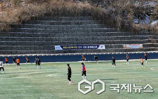 (제천=국제뉴스) 김상민 기자 = 올해 창단과 함께 첫 시즌에 돌입하는 제천시민축구단이 2026 시즌 K4리그 참가를 앞두고 실시한 선수 선발 공개 테스트를 성공적으로 마무리하며 본격적인 선수단 구성에 나섰다.