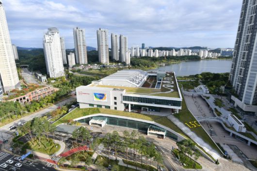 광교호수공원과 연결된 수원컨벤션센터 전경 [사진=수원시] |