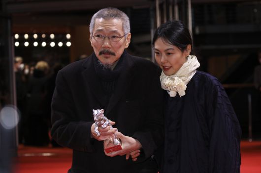 Hong Sang-soo, left, and Kim Min-hee pose with the Silver Bear Grand Jury Prize for the film 'The Novelist's Film' after the awarding ceremony at the International Film Festival Berlin 'Berlinale', in Berlin, Germany, Wednesday, Feb. 16, 2022. (Photo by Vianney Le Caer/Invision/AP) |