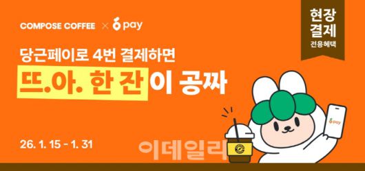 [이데일리 신수정 기자] 컴포즈커피는 지역생활 커뮤니티 당근의 간편결제 서비스 ‘당근페이’와 제휴해 프로모션을 진행한다고 15일 밝혔다.
