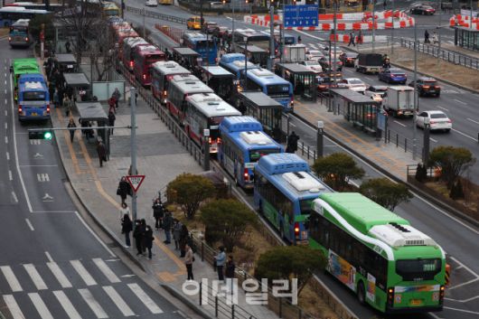 [이데일리 이영훈 기자] 노사 임금협상 결렬로 파업에 들어갔던 서울 시내버스가 협상 타결되면서 운행을 재개한 15일 오전 서울역에서 시내버스가 이동하고 있다.