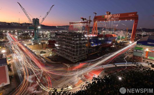 [서울=뉴스핌] 윤창빈 기자 = 어느덧 2025년의 해가 저물고 있습니다. 지난해 18일 울산 HD현대중공업 조선소의 밤은 어둠이 무색할 만큼 밝은 불빛으로 가득합니다. 붉은 말의 해인 2026년 병오년에는 한미 양국 조선산업 협력 프로젝트인 '마스가'(MASGA·미국 조선업을 다시 위대하게)가 본격화될 것으로 보입니다. 닻을 올린 마스가 프로젝트를 통해 '조선 강국'이라는 위상을 더욱 공고히 하고, 대한민국이 경제 대국으로 한 단계 더 도약하는 한 해가 되기를 기대해 봅니다. 2026.01.01 pangbin@newspim.com |