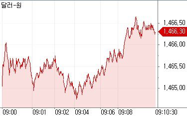 15일 오전 9시10분 현재 서울 외환시장에서 원·달러 환율은 전일대비(오후 3시30분 종가기준) 11.2원(0.76%) 하락한 1466.3원을 기록 중이다. 이날 원·달러는 1465.0원에 개장했다. 다만, 새벽시장 2시 종가(1464.0원)보다는 소폭 상승하는 모습이다.
