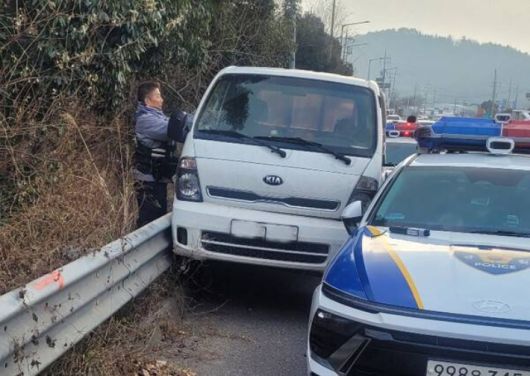 지난 7일 낮 1시 30분쯤 전남 순천 별량에서 보성 방향으로 향하던 도로에서 한 트럭이 중심을 잡지 못한 채 위태롭게 주행하고 있다는 신고가 경찰에 접수됐다. 곧이어 차량이 가드레일과 충돌할 것 같다는 추가 신고까지 이어졌다.