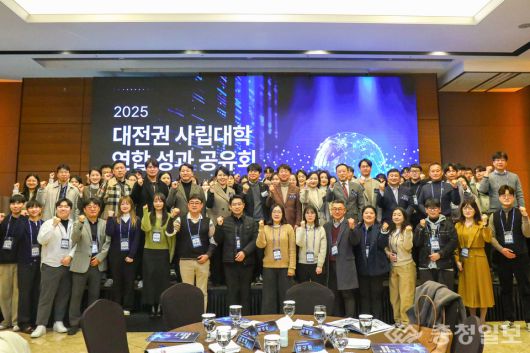 대전지역 사립대학 관계자와 실무진들이 참석한 가운데 열린 ‘2025 대전권 사립대학 역량성과 공유회’에서 참가자들이 혁신 성과 확산과 공동 성장을 다짐하고 있다 |