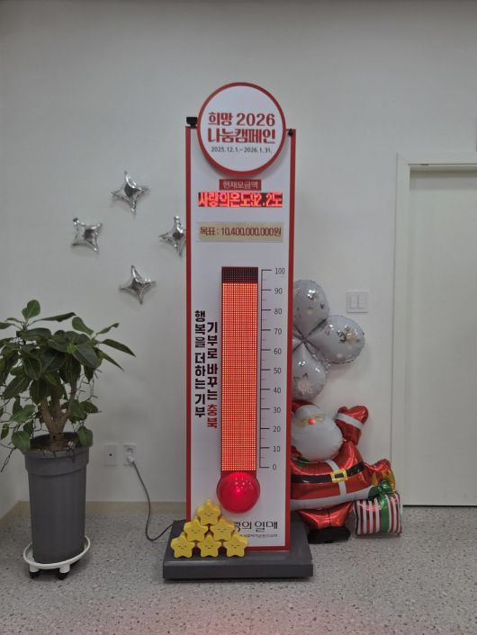충북 '희망2026나눔캠페인' 사랑의 온도탑이 92도를 달성했다.