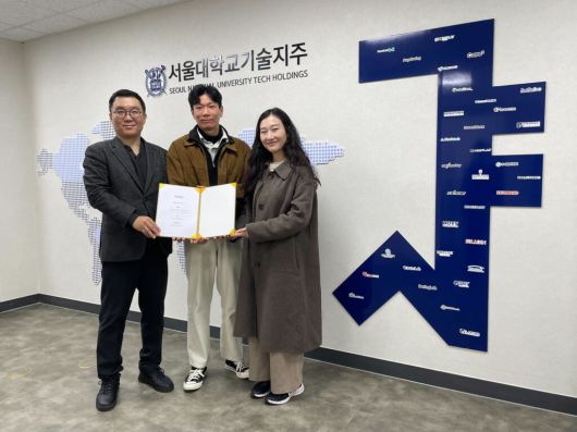 (왼쪽부터) 서울대기술지주 목승환 대표, 아워스팟 윤홍석 대표, 장지혜 대표 |
