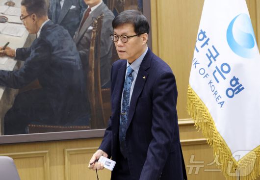 (서울=뉴스1) 김진환 기자 = 이창용 한국은행 총재가 15일 오전 서울 중구 한국은행에서 열린 금융통화위원회 본회의에 참석하고 있다. (공동취재) 2026.1.15/뉴스1