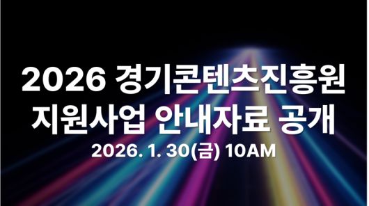 2026년 경기도 콘텐츠 지원 사업에 대한 자세한 내용은 30일 오전 10시부터 공식 유튜브 채널과 경콘진 누리집에서 확인할 수 있다.