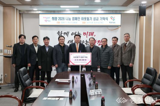 충남 당진시는 14일 시청 접견실에서 축산 관련 유관 조합과 생산자단체가 참여한 가운데 '희망 2026 나눔캠페인 이웃돕기 성금 전달식을 진행했다고 밝혔다.