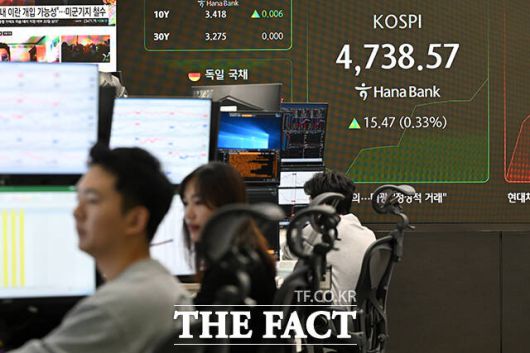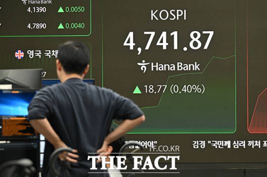 이날 코스피는 전 거래일(4723.10)보다 12.82포인트(0.27%) 하락한 4710.28에 거래를 시작했다. 지수는 초반 소폭 하락 출발했지만 장중 4749.64까지 오르며 최고 수치를 경신했다.