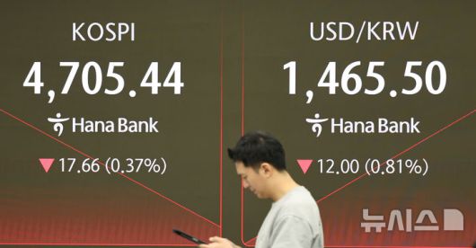 [서울=뉴시스] 박주성 기자 = 15일 오전 서울 중구 하나은행 딜링룸에서 딜러들이 업무를 하고 있다.코스피는 전 거래일(4723.10)보다 12.82포인트(0.27%) 하락한 4710.28에 개장했다. 서울 외환시장에서 원·달러 환율은 전 거래일 주간거래 종가(1477.5원)보다 12.5원 내린 1465.0원에 출발했다. 2026.01.15. park7691@newsis.com |