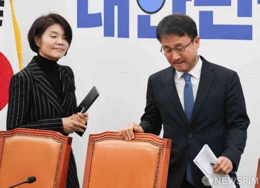 [서울=뉴스핌] 윤창빈 기자 = 한병도 더불어민주당 대표, 한정애 정책위의장이 서울 여의도 국회에서 열린 정책조정회의에 참석하고 있다. 2026.01.15 pangbin@newspim.com |