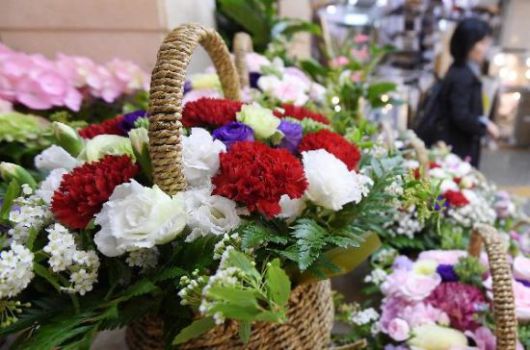 서울 서초구 반포지하상가 꽃상점에서 카네이션 등 꽃 바구니가 진열돼있다./김현민 기자 kimhyun81@ |