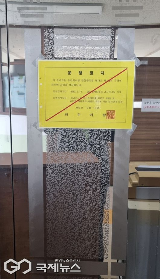 [박상돈 기자] (파주=국제뉴스) 박상돈기자 = 파주시 관내 2개 초등학교에 설치된 장애인용 엘리베이터가 무려 16년 동안 사용되지 않은 채 불법 방치돼 온 사실이 확인돼 충격을 주고 있다.