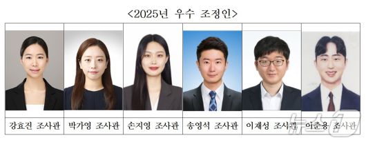 (세종=뉴스1) 심서현 기자 = 한국공정거래조정원은 15일 '2025년 우수 조정인'으로 강효진·박가영·손지영·송영석·이재성·이준용 조사관을 선정했다고 밝혔다.