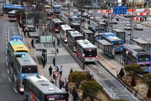 (서울=뉴스1) 김도우 기자 = 서울 시내버스 노사 간 임금 협상 합의와 파업이 철회된 15일 서울역 버스환승센터에 시내 버스가 오가고 있다. 2026.1.15/뉴스1