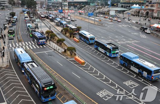 (서울=뉴스1) 김도우 기자 = 서울 시내버스 노사 간 임금 협상 합의와 파업이 철회된 15일 서울역 버스환승센터에 시내 버스가 오가고 있다. 2026.1.15/뉴스1