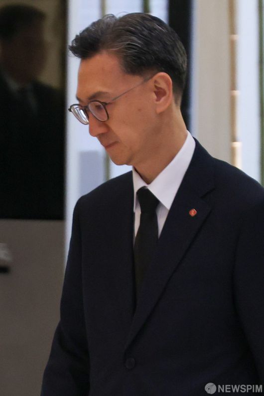 [서울=뉴스핌] 류기찬 기자 = 고정욱 롯데지주 대표이사가 15일 오전 서울 송파구 롯데월드타워에서 열린 ‘롯데 창업주 고(故) 신격호 명예회장 6주기 추모식에서 헌화를 마친 뒤 이동하고 있다. 2026.01.15 ryuchan0925@newspim.com