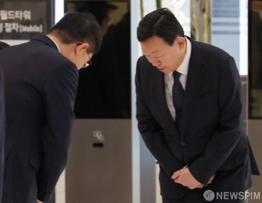 [서울=뉴스핌] 류기찬 기자 = 신동빈 롯데그룹 회장이 15일 오전 서울 송파구 롯데월드타워에서 열린 ‘롯데 창업주 고(故) 신격호 명예회장 6주기 추모식을 마친 뒤 임직원들과 인사하고 있다. 2026.01.15 ryuchan0925@newspim.com