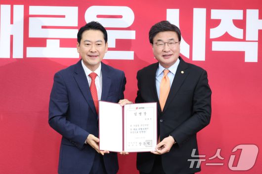 (서울=뉴스1) 신웅수 기자 = 장동혁 국민의힘 대표가 15일 서울 여의도 국회에서 열린 최고위원회의에 앞서 정점식 정책위의장에게 김대식 당대표 특별보좌역 단장에게 임명장을 수여하고 있다. 2026.1.15/뉴스1phonalist@news1.krCopyright ⓒ 뉴스1. All rights reserved. 무단 전재 및 재배포, AI학습 이용 금지.