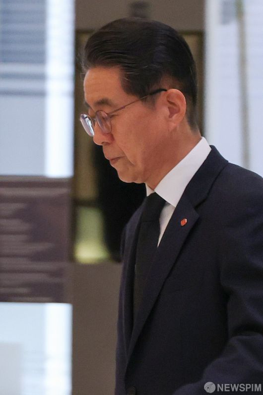 [서울=뉴스핌] 류기찬 기자 = 노준형 롯데지주 사장이 15일 오전 서울 송파구 롯데월드타워에서 열린 ‘롯데 창업주 고(故) 신격호 명예회장 6주기 추모식에서 헌화를 마친 뒤 이동하고 있다. 2026.01.15 ryuchan0925@newspim.com