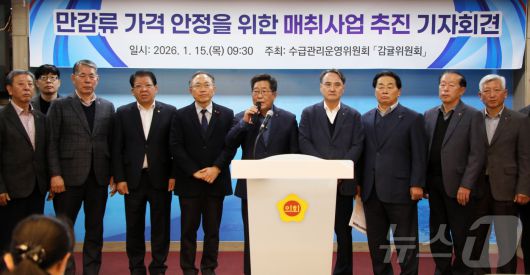 (제주=뉴스1) 오미란 기자 = 백성익 사단법인 제주감귤연합회장(효돈농협 조합장)이 15일 오전 제주도의회 도민카페에서 기자회견을 열고 만감류 가격 안정을 위한 매취사업 추진 계획을 발표하고 있다. 2026.1.15/뉴스1mro1225@news1.krCopyright ⓒ 뉴스1. All rights reserved. 무단 전재 및 재배포, AI학습 이용 금지.
